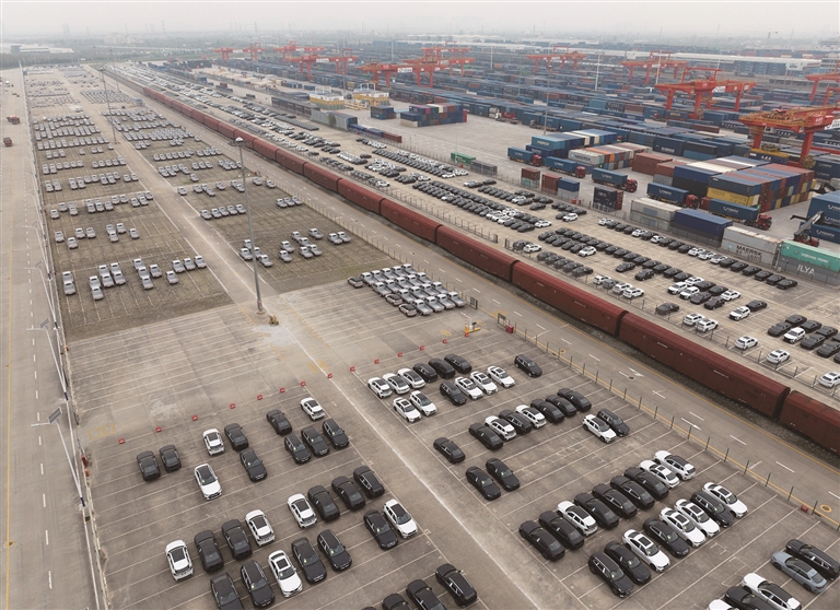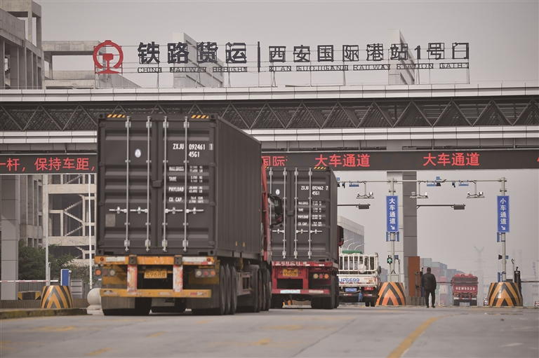 11月14日,货车驶入西安国际港站。