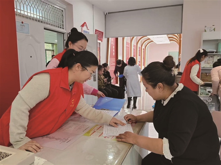 近日,在昌吉州中心血站,志愿者在为献血人员做健康征询。□袁琪浩摄