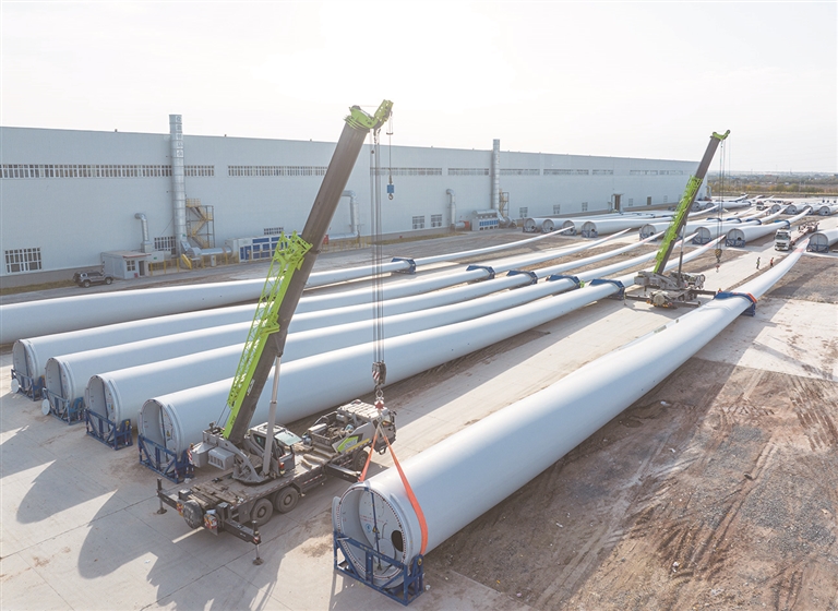 11月22日,工人在位于昌吉国家高新技术产业开发区的新疆成飞新材料有限公司风电叶片生产基地作业。目前,该企业4条百米级风电叶片生产线正满负荷运转赶制订单,预计年产值可突破6亿元。□本报记者 何 龙摄