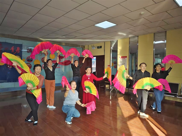 今年以来,昌吉市建国路街道通过盘活闲置资源,按照“办公面积最小化 服务功能最大化”的原则,将多余的办公场地改造为功能齐全的老年活动中心。如今,每天都有不少老人在社区老年活动中心跳舞、下棋,参与各类娱乐活动。 图为在昌吉市建国路街道嘉顺社区老年活动中心,居民们在舞蹈室排练舞蹈。□张 楼摄