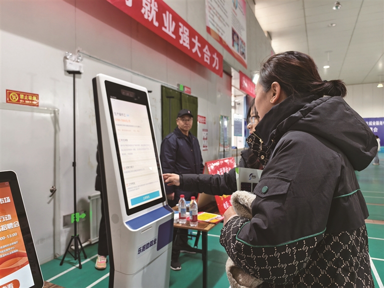 近日,在招聘会现场,求职者在AI求职体验服务专区进行企业岗位匹配。□本报记者 保 娜摄