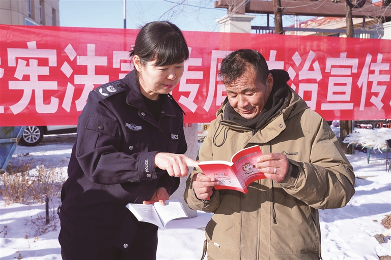 11月28日,在玛纳斯县凤凰广场,玛纳斯县司法局工作人员用通俗易懂的语言给群众科普法律知识。□丁慧琴摄