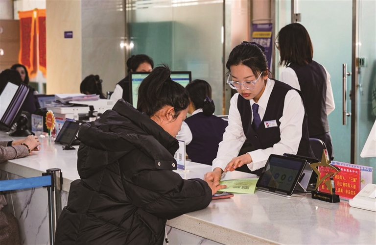 吉木萨尔县政务服务中心工作人员正在为群众办理业务。
