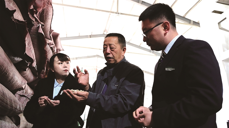 银行工作人员正在了解合作社农资储备情况。□张新珍摄
