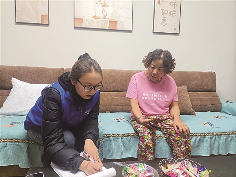干部入户走访按需提供“定制服务”,针对老年人关心的养老认证、医保缴费等问题,现场手把手指导操作;对于居民反映的小区基础设施维修、停车位规划等民生事项,逐一登记造册、明确解决时限;同时向居民宣传消防安全、民族团结等政策知识,引导居民参与社区环境整治与平安建设,凝聚共建合力。