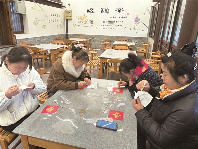 阜康市滋泥泉子镇文化学习团成员在山西省太原古县城体验非遗项目—沥金彩绘。□李嘉浩摄