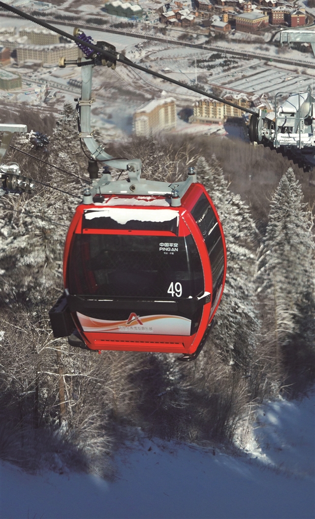 这是12月2日在吉林市北大湖滑雪度假区拍摄的由北京起重运输机械设计研究院和徐州天马索道缆车设备有限公司共同研发生产的缆车。据介绍,北大湖滑雪度假区的缆车国产化达90%以上。