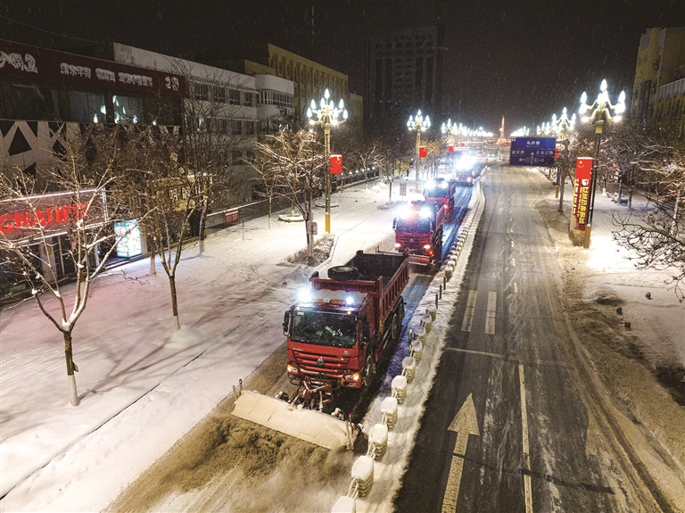 本报讯 记者阿依加玛丽·列提甫、保娜报道:随着本次降雪持续,昌吉州各地立即启动清雪除冰应急响应,多部门迅速联动出击,全力以赴连夜开展清雪除冰作业。