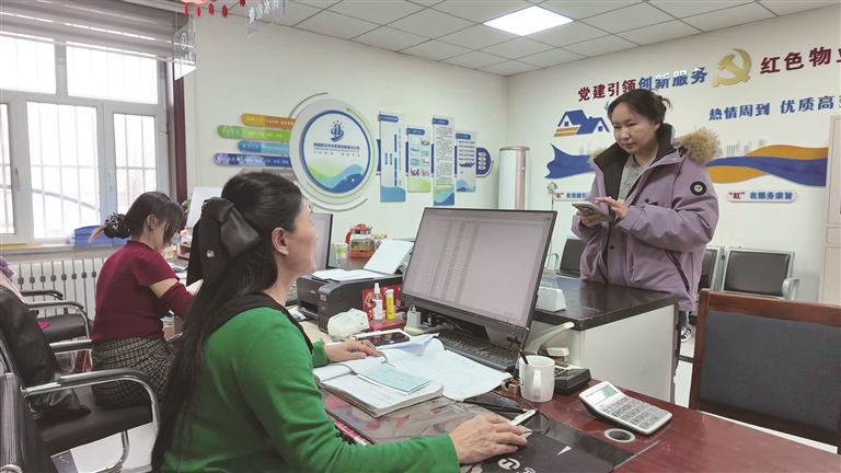 玛纳斯县乐土驿镇郑家庄村村民在村办物业公司办理缴费业务。
