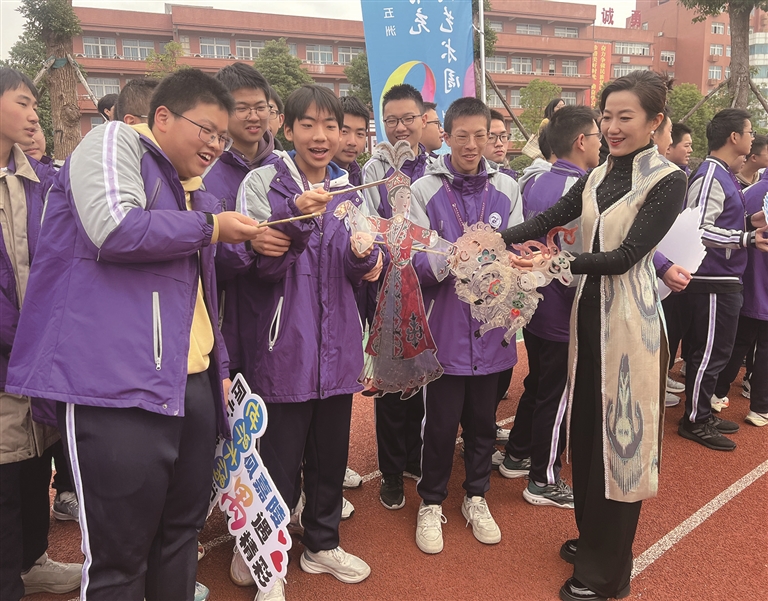 第四届南充国际木偶艺术周期间,各艺术团队以广场、中学校园为流动舞台,展开行进式表演。