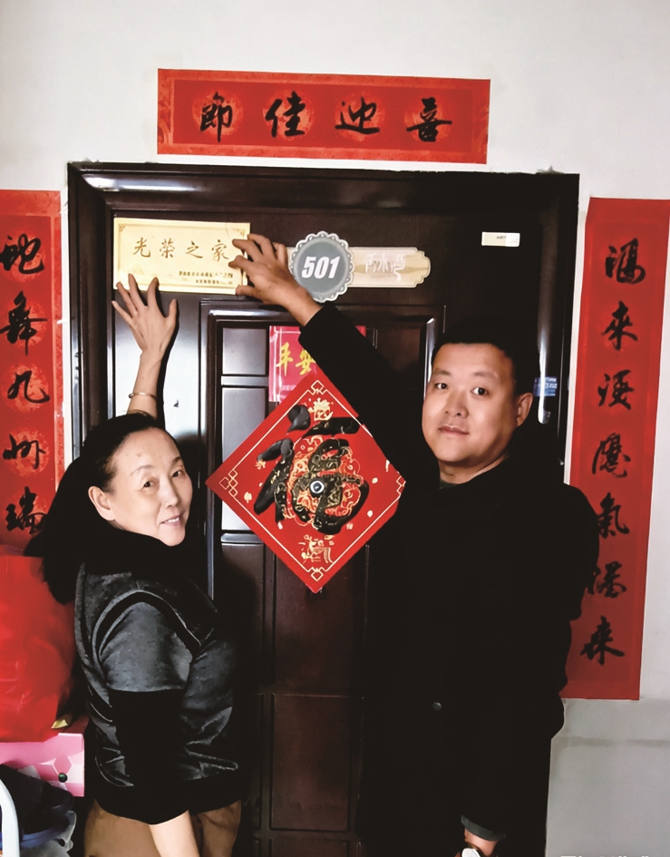 本报讯 通讯员陈和平报道:近日,昌吉市滨湖镇退役军人服务站开展“送牌上门、慰问暖心”专项活动。工作人员带着烫金的“光荣之家”牌匾与慰问信,逐户走访辖区现役军人和退役军人家庭,将党和政府的尊崇与关怀精准送达他们身边,营造“军爱民、民拥军”的浓厚氛围。