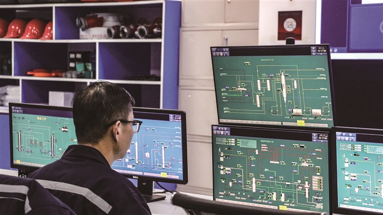 走进呼图壁县锐源通化工有限责任公司生产区,呈现出一种“安静的忙碌”——这里几乎听不到机器轰鸣,也少见工人来回走动,跃入眼帘的景象通常是机械手臂灵活搬运物料和控制中心大屏幕上跳动的数据,一切都显得井然有序。