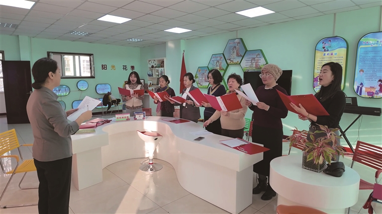 近日,在玛纳斯镇南城社区的“银龄”公益课堂上,居民在诵读经典文学。