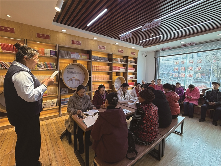 昌吉市宁边路街道西街社区阅读体会分享活动现场。□吕振江摄