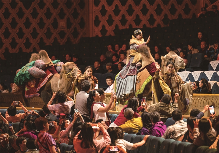 这座形似“金色雪莲”的宏伟建筑,早已成为昌吉州的文化地标。自2015年8月开业以来,新疆大剧院始终以文化为桥,和这座城市一起成长。同年首演的《千回西域》一经亮相便广受赞誉,2024年经重新编排后再度归来,至今已演出1400余场,接待国内外游客200万人次。2025年10月,该剧目入选文化和旅游部全国旅游演艺精品名录,跻身全国必看实景剧行列。如今,剧院不仅保有《千回西域》双版本,更引入《小王子》等亲子剧、开园仪式及12个微演艺剧目,让文化供给愈发多元。