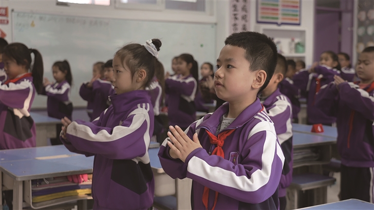 大课间铃声响起,阜康市第五小学的特色活动准时开始。教室里,孩子们在明快的音乐中做起融入武术元素与流行手势舞的泡泡操,动作整齐、节奏活泼;体育馆内,课间篮球联赛正火热进行,小球员们运球、传球、投篮一气呵成,展现出蓬勃朝气。学生阿力合斯·叶尔克说:“大课间活动让我们身心得到放松,能以更好的状态投入学习。”