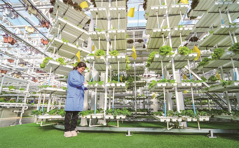 12月22日,在昌吉国家农业高新技术产业示范区新疆农业博览园智慧农业科技馆内,工作人员正在管护蔬菜。该示范区持续推进智慧农业与旅游、研学等业态融合,着力打造集科普、体验于一体的研学实践基地,吸引游客前来感受“数字种田”的科技魅力。□本报记者 陶维明摄