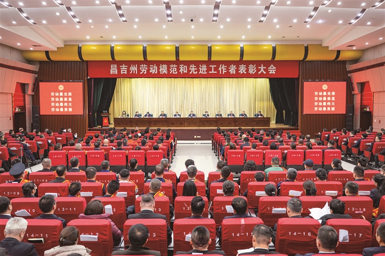 会上宣读了关于表彰昌吉州劳动模范和先进工作者的决定,并为劳动模范和先进工作者代表颁发荣誉证书。受表彰的昌吉州劳动模范和先进工作者代表作交流发言,自治区先进工作者代表宣读倡议书。