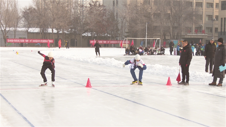 昌吉市“传承冬奥精神 共享冰雪乐趣”第三届中小学生校园速度滑冰竞赛现场。□本报实习记者 杨晓溢摄