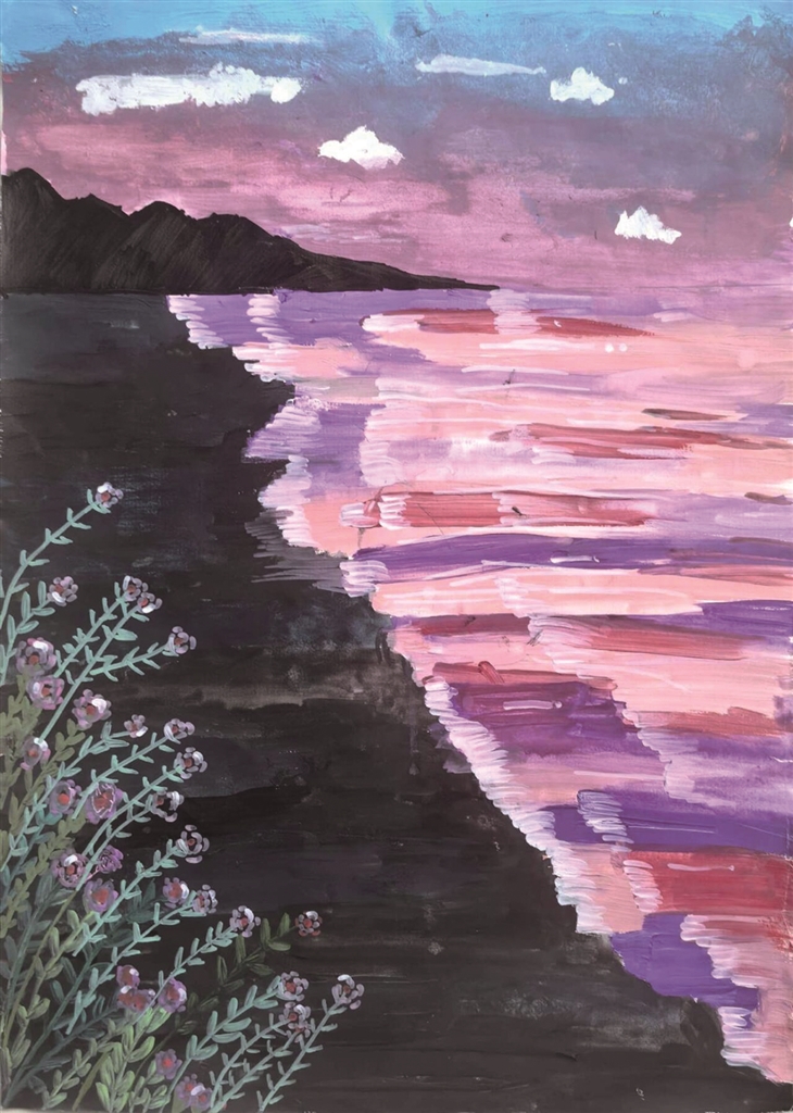 《藕粉色海》水粉画