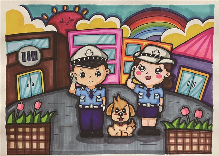 《警心护家园》 马克笔画