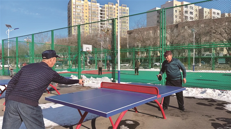 傍晚的奇台县城南门笼式多功能运动场,一派热闹景象。周边居民三五成群,有的组队打篮球,有的结伴打乒乓球,场边的健身设备也不时有居民使用。这座2025年5月底投用的运动场,功能覆盖篮球、排球、乒乓球等多种球类运动,还能满足健身操、太极拳等活动需求,实现“一地多用”,彻底解决了周边群众健身无场地的难题。“自从安上这些体育器材以后,我们上岁数的人也可以在这活动,在这练腿、练胳膊,大家对锻炼身体的热情更高了。”奇台县犁铧尖社区居民刘秀霞说。