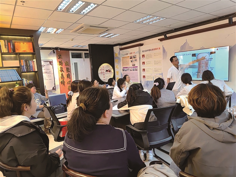 2025年11月,白贺霞名医工作室牵头组织医务人员开展中医适宜技术培训,基层分院及社区卫生服务站的40余名医务人员参加培训,通过系统授课与实操演练相结合的方式,有效提升了基层中医服务队伍的专业能力。