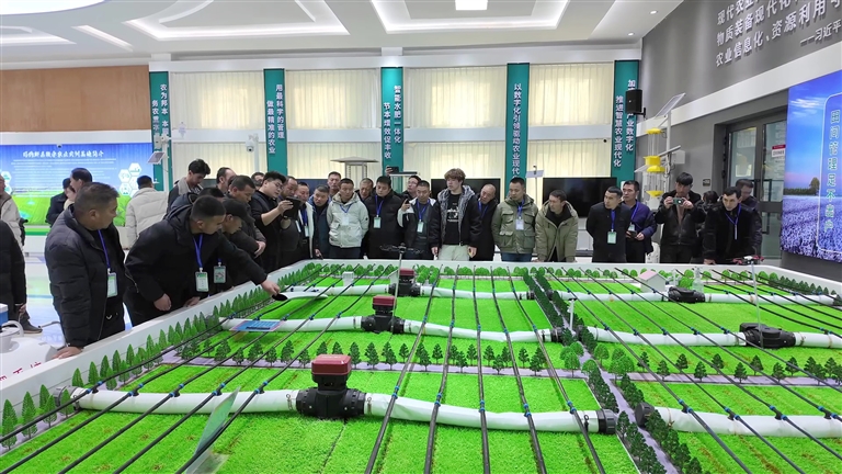 1月15日,玛纳斯县2026年农业生产数字技术应用培训班在县数字农业智能装备产业园开班。图为参训人员正在学习智能灌溉技术的原理和应用方法。