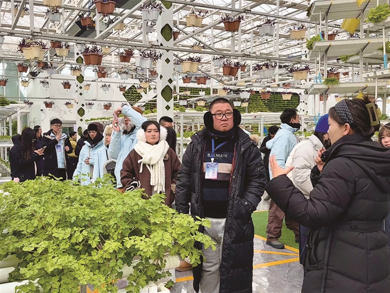 一走进智慧农业科技馆,台胞青年便被眼前的景象所吸引。恒温恒湿的展厅内,“集装箱农场”集约化种植高效环保,管道栽培的绿色蔬菜整齐排列、长势喜人,与室外寒风萧瑟、草木枯黄的景象形成鲜明对比。跟随讲解员的步伐,青年们“沉浸式”体验、了解设施农业如何以集约、高效、绿色模式,推动特色作物、绿色果蔬突破季节限制,在育苗生产环节创造生长奇迹,有效缓解新疆冬季果蔬供应不足的难题,真切体会到科技为民生带来的切实改善。