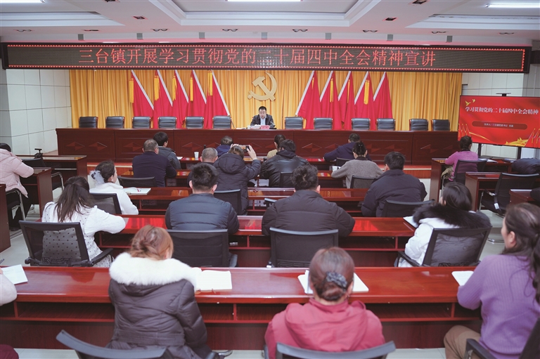 本报讯 通讯员吴欣昊报道:近日,吉木萨尔县三台镇开展学习贯彻党的二十届四中全会精神宣讲活动,推动全会精神落地生根。各村、社区及机关干部共80余人参加了活动。