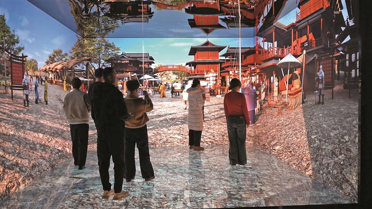 奇台县博物馆内,游客们正在体验三折幕投影。 □李逸凡摄
