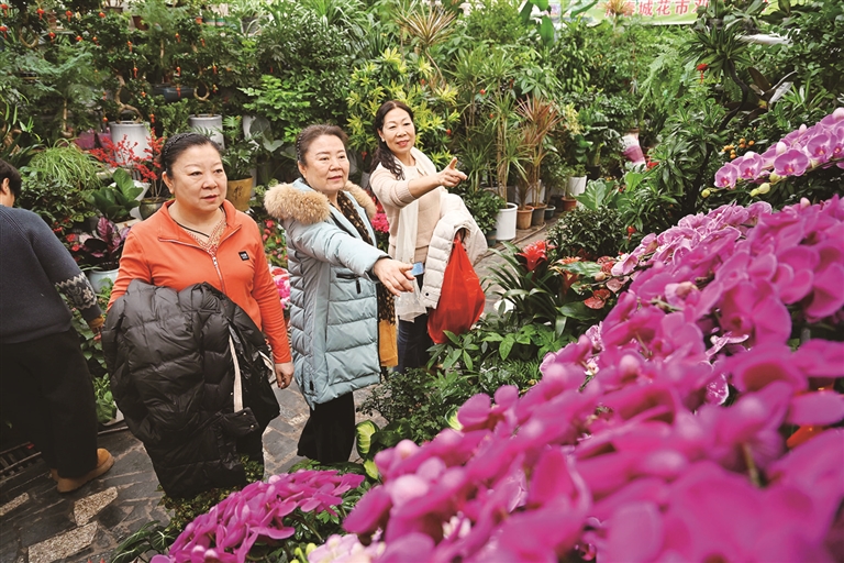 2月1日,位于昌吉市建国西路的七彩苑花卉市场,市民在挑选花卉。