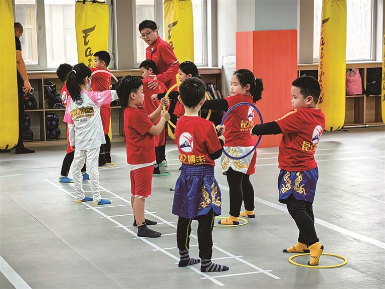 训练场上,11岁的学员白佳兴正专注地练习组合拳动作。“我喜欢自由搏击,不仅能强身健体,还能学会自我保护。”白佳兴擦着额头的汗水说。