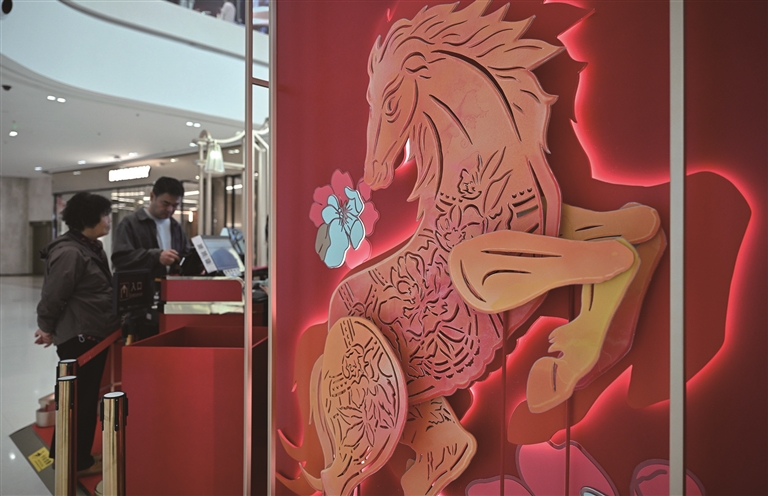 这是在海口国际免税城拍摄的马年主题装饰(1月24日摄)。