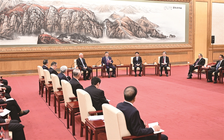 2月11日,习近平、王沪宁、蔡奇、丁薛祥等在北京人民大会堂同党外人士欢聚一堂,共迎佳节。