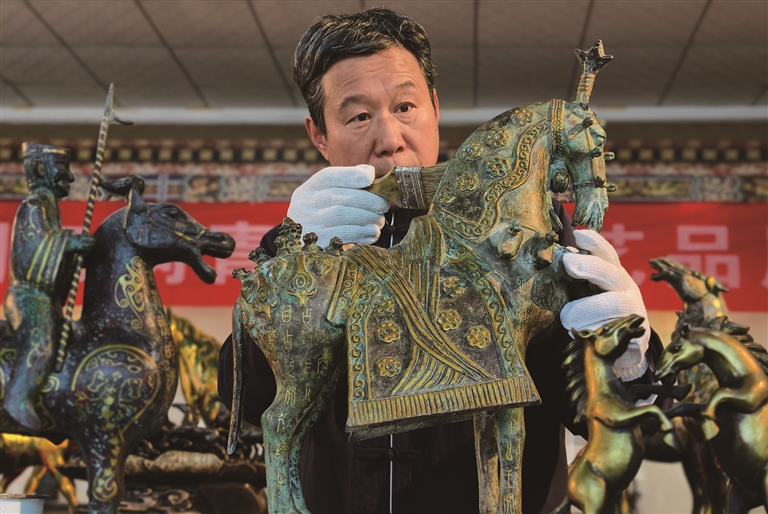 2月8日,在河南省伊川县洛阳烟云涧青铜小镇,工作人员方长勋在制作青铜器马。农历马年将至,河南省洛阳市多地抢抓机遇,依托唐三彩烧制技艺和青铜器制作技艺,生产各类主题产品,让村民在传承传统文化的同时实现增收。 □新华社发(高山岳摄)