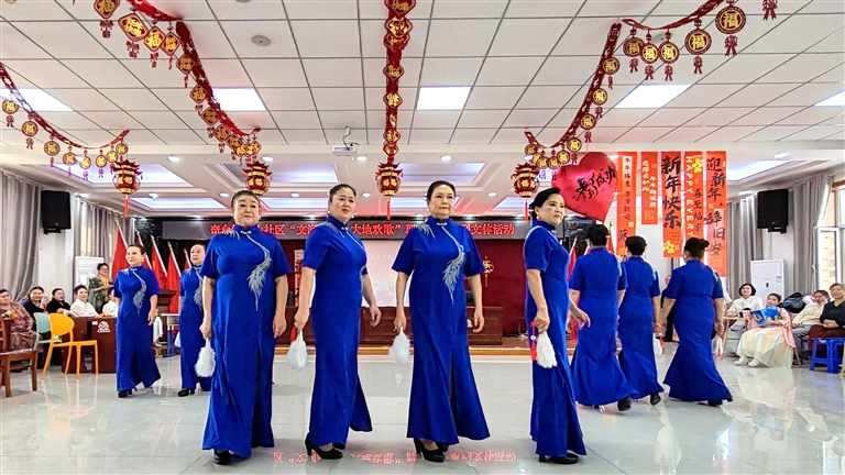 好戏开场,精彩连连。优雅的旗袍秀步步生韵,灵动的敦煌舞衣袂翩跹,欢快的秧歌扭出精气神,社区干部自编自演的创意节目诙谐又暖心。台下观众看得入神,时不时鼓掌、喝彩。