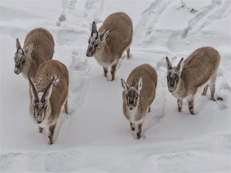 鹅喉羚属典型的荒漠、半荒漠区域生存的动物,素有“生态指示员”之称,主要以梭梭、针茅等植物为食。近年来,得益于阜康市上户沟乡持续推进草原禁牧休牧、荒漠生态修复等举措,当地植被覆盖度稳步提升,鹅喉羚种群数量逐年递增。阜康市林业和草原局公益林管理中心副主任阿德力拜克·哈布拉哈提说:“降雪后,我们加大巡护频次,精准科学锁定鹅喉羚活动区域,投放玉米秆、苜蓿等饲草料。”
