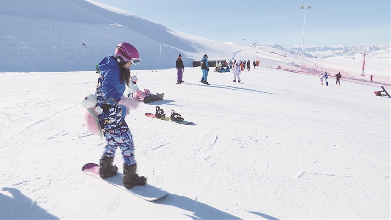 在努尔加滑雪场,身着各色滑雪服的游客在不同级别的滑雪道上尽情体验冰雪乐趣。从甘肃来昌吉探亲的游客苏瑞林说:“早就听说这里的滑雪场很有意思,今天专门带着家人一起过来感受一下。这里有专业的滑雪道,还有缆车、雪地摩托、雪圈等娱乐项目,全家人都有感兴趣的项目。累了还可以打卡旁边的美食区,很有意思。”