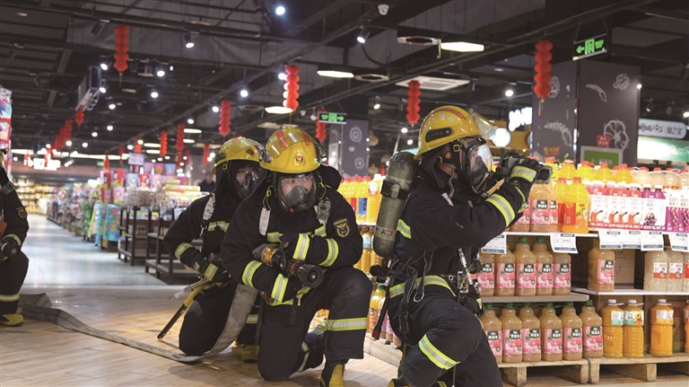 近日,在玛纳斯县金汇万家超市,一场消防实战演练正在紧张进行。演练模拟超市突发火情后,消防员快速响应、精准处置,从火情侦查到灭火救援,各环节衔接有序、操作规范,用实战化演练筑牢节日安全防线。