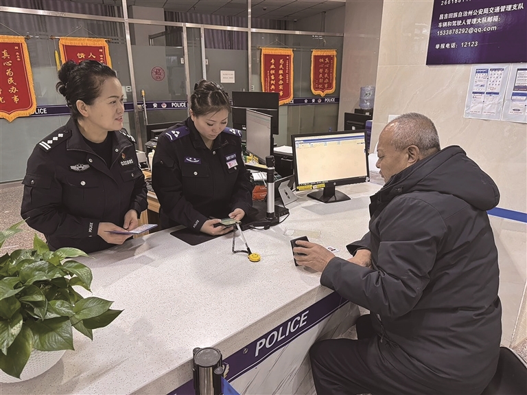 窗口前,他们是高效解民忧的人。大年初一清晨,县政务服务中心公安窗口接到返乡群众张先生求助,驾驶证过期无法合法驾车。当日值班民警迅速到岗,启动“关联业务并联办理”机制,协助张先生快速处理违章后无缝衔接换领新驾照,全程仅用30分钟。张先生感动地说:“大过年的,你们还专门为我加班,这份敬业让我心里特别温暖。”
