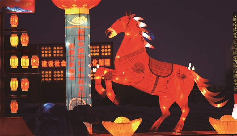 奇台县城的一处灯饰景观。