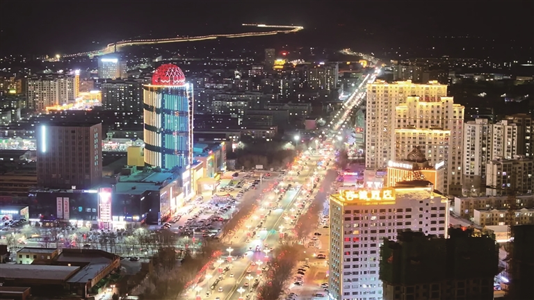春节期间的奇台县城,夜晚来临,华灯初上,整个城市五彩缤纷,铺展成漫天的流光溢彩,吸引了居民和游客纷至沓来欣赏夜景,点赞美好生活。