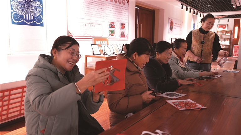 走进吕家庄村文化室,暖意融融,欢声笑语不断。50多位村民与剪纸爱好者围坐在一起,在村党总支书记、村委会主任包新文的指导下,剪刀翻飞,红纸轻响。“马的部分,白色的剪掉,黑色的留下”“要把阴影的地方留下”,伴着细致的指导声,一张张蕴含吉祥寓意的窗花、福字在村民指尖诞生。大家相互交流、彼此切磋,浓浓的年味被一点点编织进红纸之中。