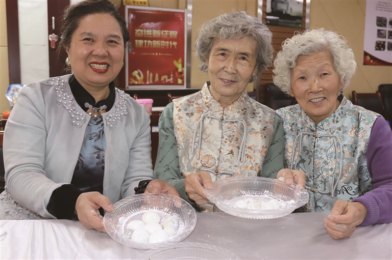 近日,昌吉市嘉顺社区开展元宵节主题活动。图为居民们展示包好的汤圆。