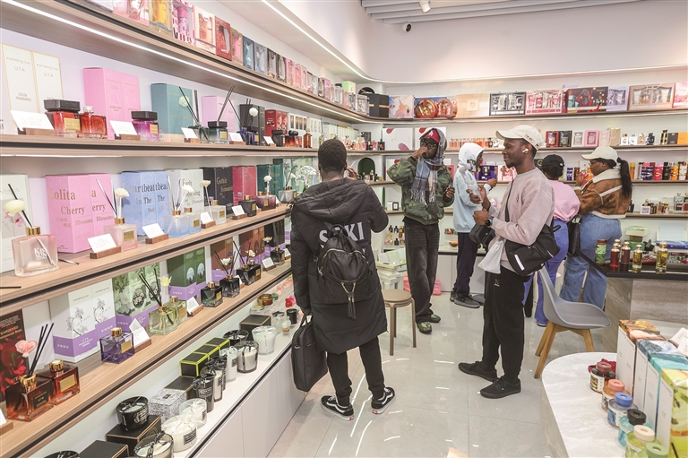 在一家护肤品店铺内,来自黎巴嫩的店铺负责人埃利热情地招呼着客户。他告诉记者,从2008年在义乌创业至今,业务规模不断增长,目前在全球数贸中心已经开了两家店铺,第三家店铺正在加紧装修,将在近期开业。