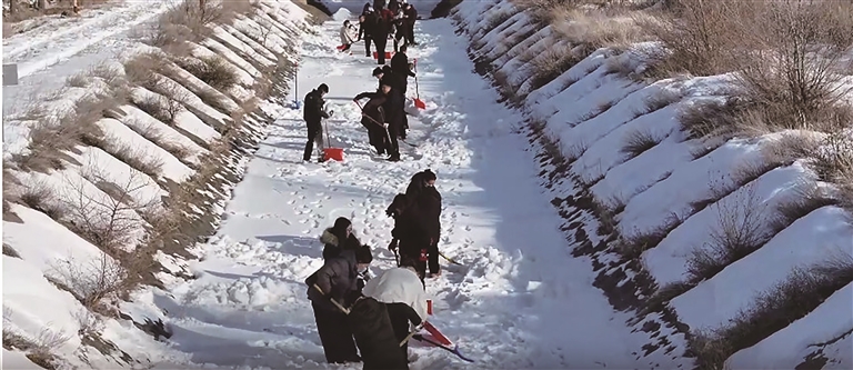 尽管近期气温逐步回升、冰雪渐融,但河道破冰作业依然难度较大。近日,在奇台县开垦河渠首下游段闸口,受现场地形条件限制,大型机械无法进场作业。当地水管站干部穿戴好安全防护装备,在闸口冰面进行人工凿冰作业,全力保障河道引水安全畅通。同时,在14.2公里长的引水干渠沿线,百余名水利职工、乡镇干部和群众齐心协力,手持铁锹等工具清理渠道积雪,打通输水“动脉”,确保水源安全引入下游水库。