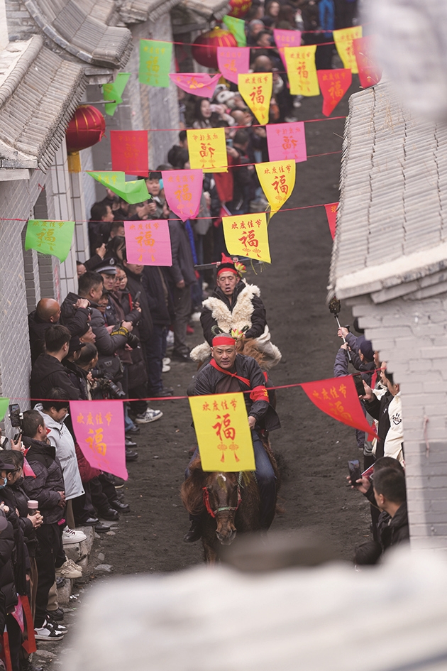 3月4日是农历正月十六,众多游客来到山西省阳泉市平定县下董寨村,感受国家级非遗项目“跑马排”。“跑马排”是下董寨村一项历史悠久的民俗活动,村民骑着马在长百余米、平均宽度不足四米的青石古巷中来回奔跑,吸引众多游客观看。