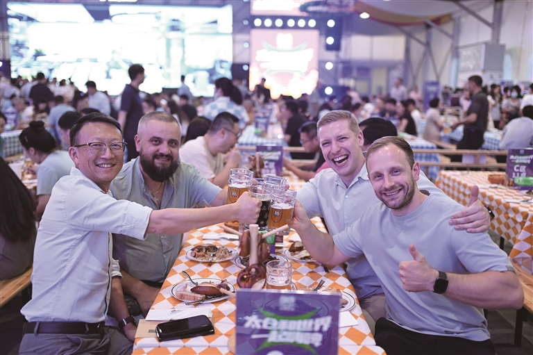 2025年8月26日,人们在第20届太仓啤酒嘉年华活动上举杯。□新华社发(王须中摄)