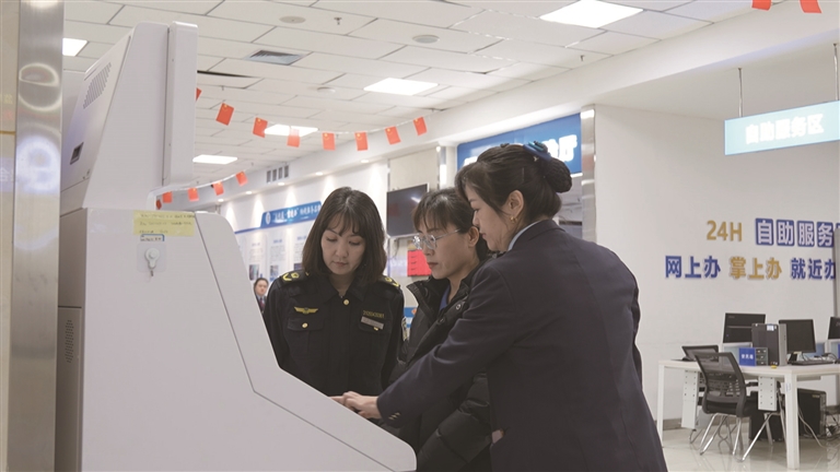 玛纳斯农商银行大堂经理李雪梅表示,现在办事群众在政务大厅即可自助领取营业执照,同步享受银行开户、融资对接等一揽子金融服务,真正实现“进一扇门、办多件事、最多跑一次”,有效提升企业开办便利度。
